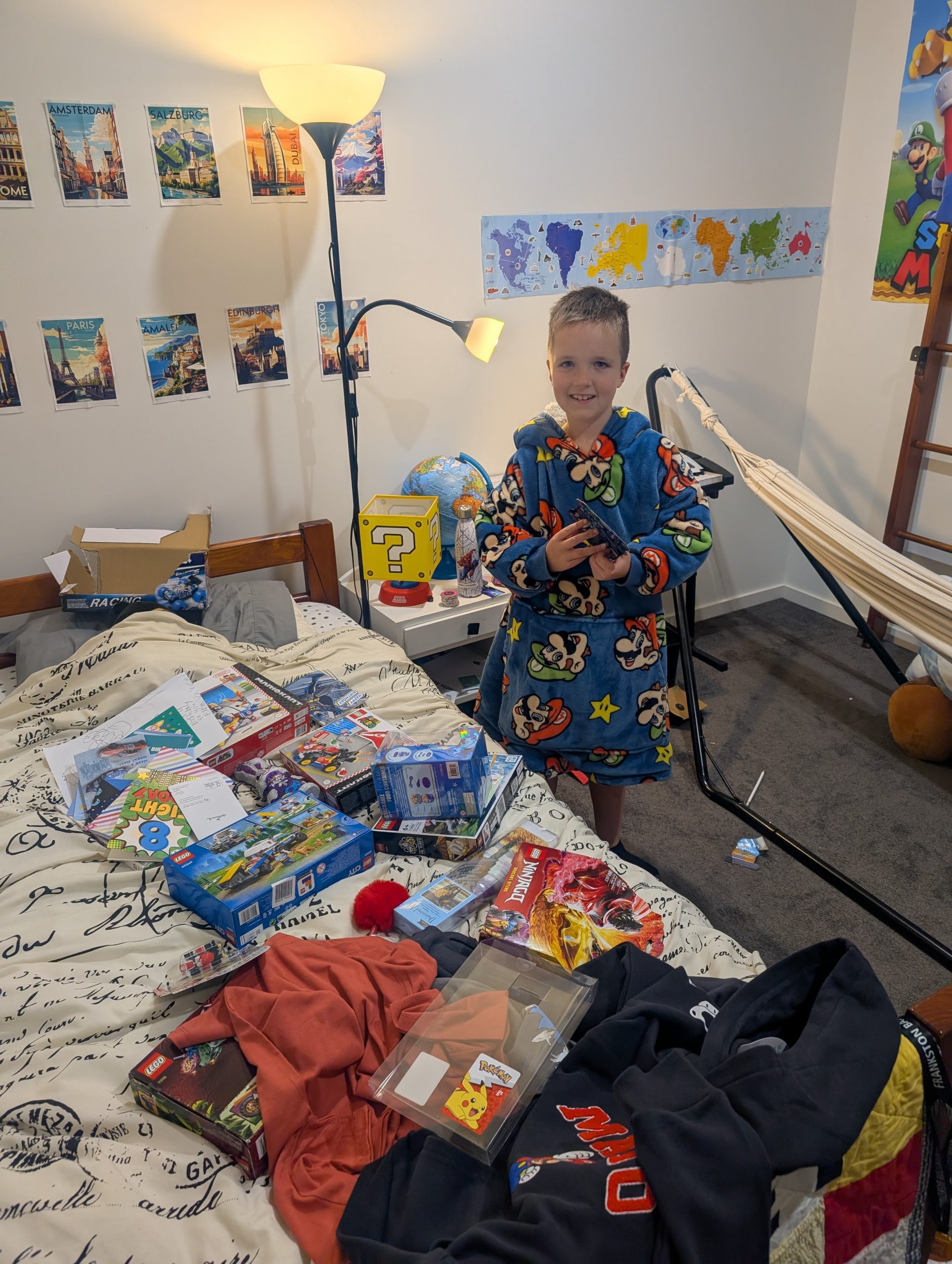 When the kids came back in, the food disappeared in record time and they loudly sang Happy Birthday to our boy. His eyes were bright with excitement the entire time and he relished getting the chance to celebrate with a crowd again. The incredible generosity of his friends again blew us away as we hauled home the boot-full of gifts and he marvelled at each one.